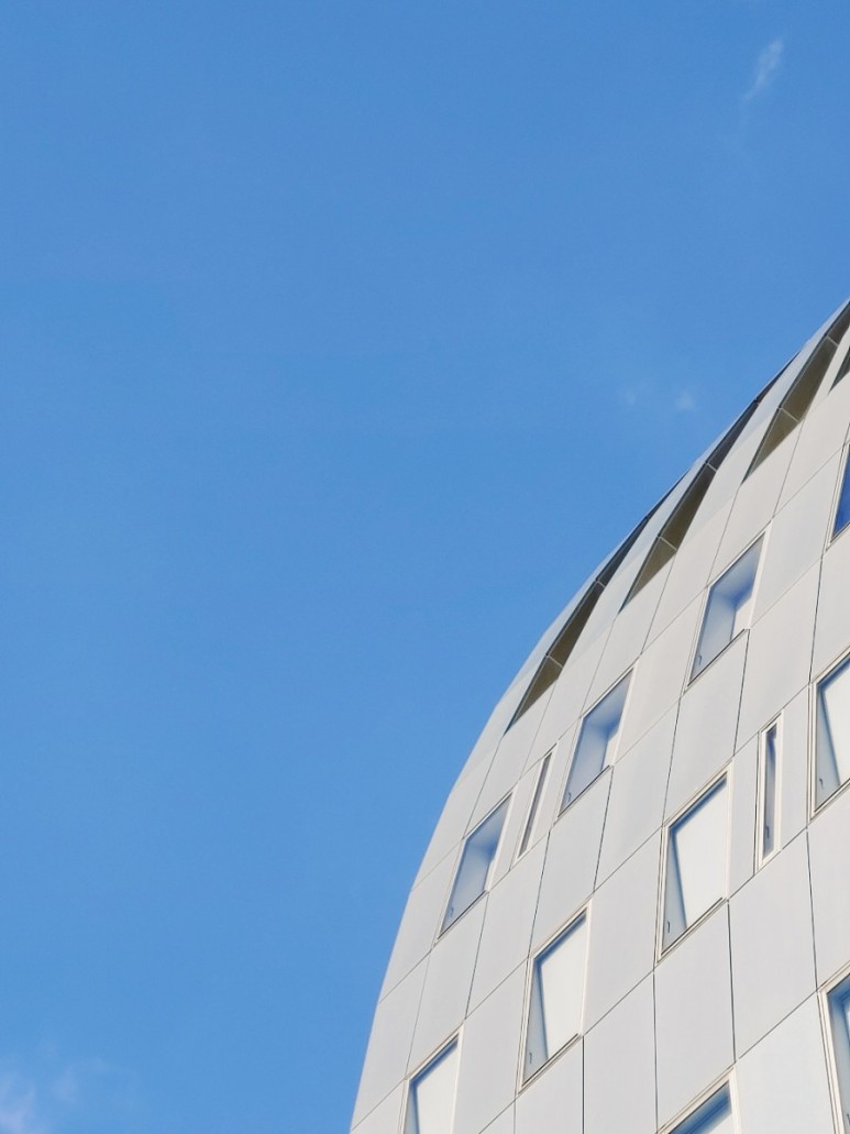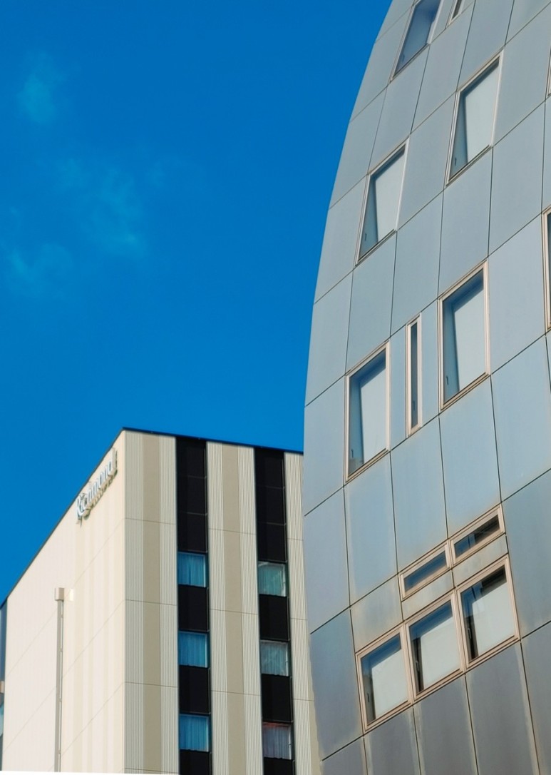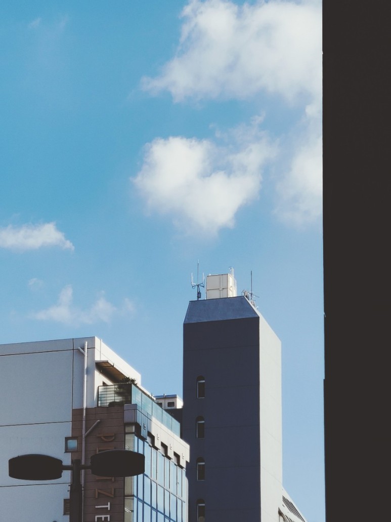 Curve - building on the right, and straight lines inside the curve Taken in Fukuoka, Tenjin.