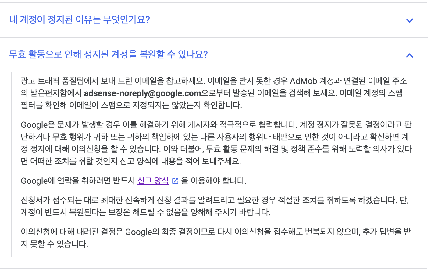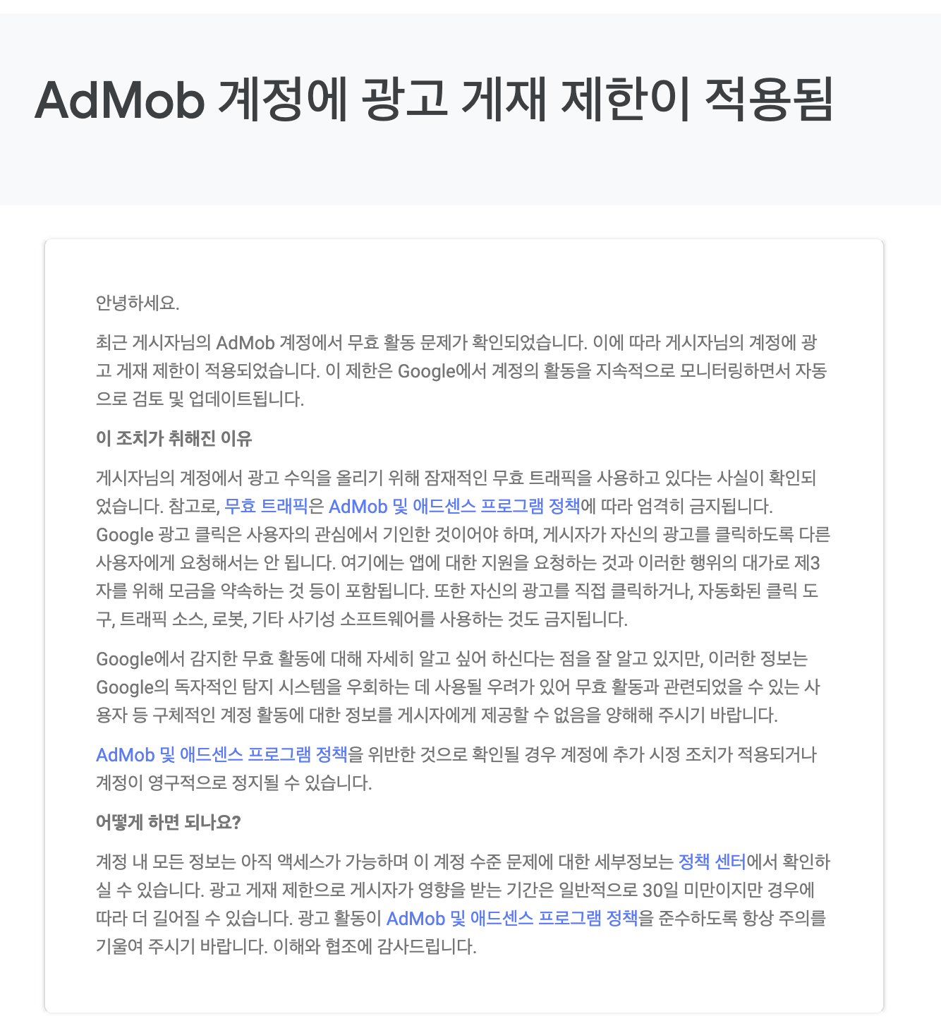 AdMob 및 애드센스 프로그램 정책 무효 활동: 정지된 계정