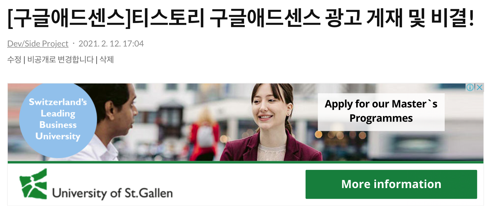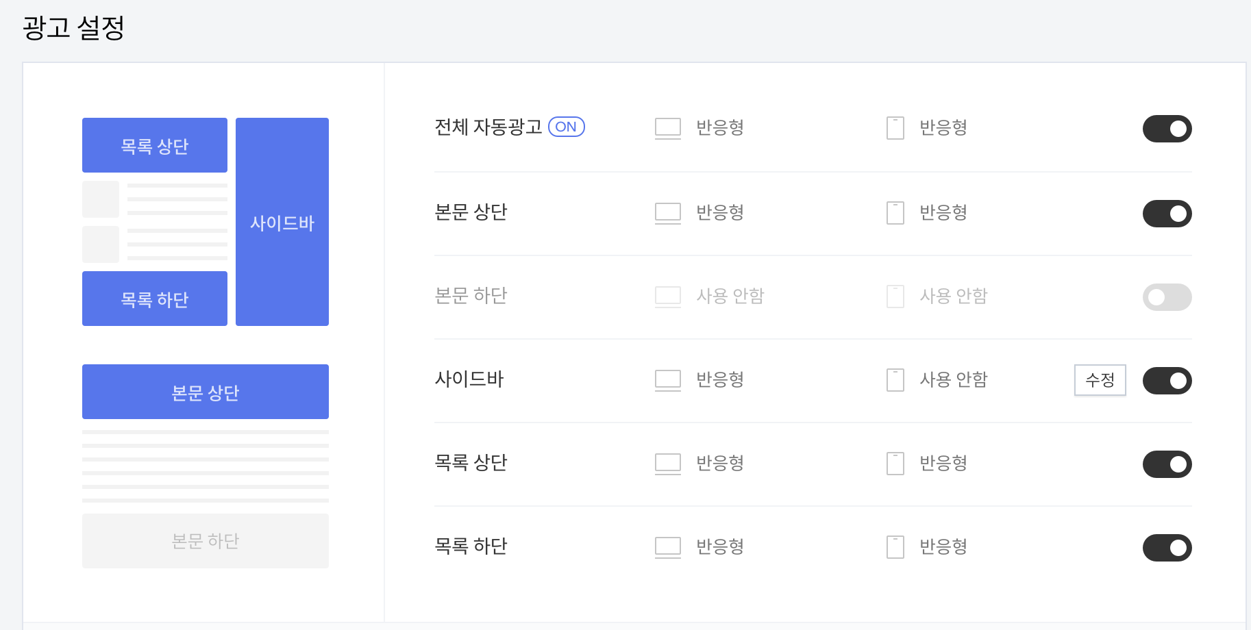 티스토리에서는 설정을 통해 간단하게 광고 설정이 가능합니다.