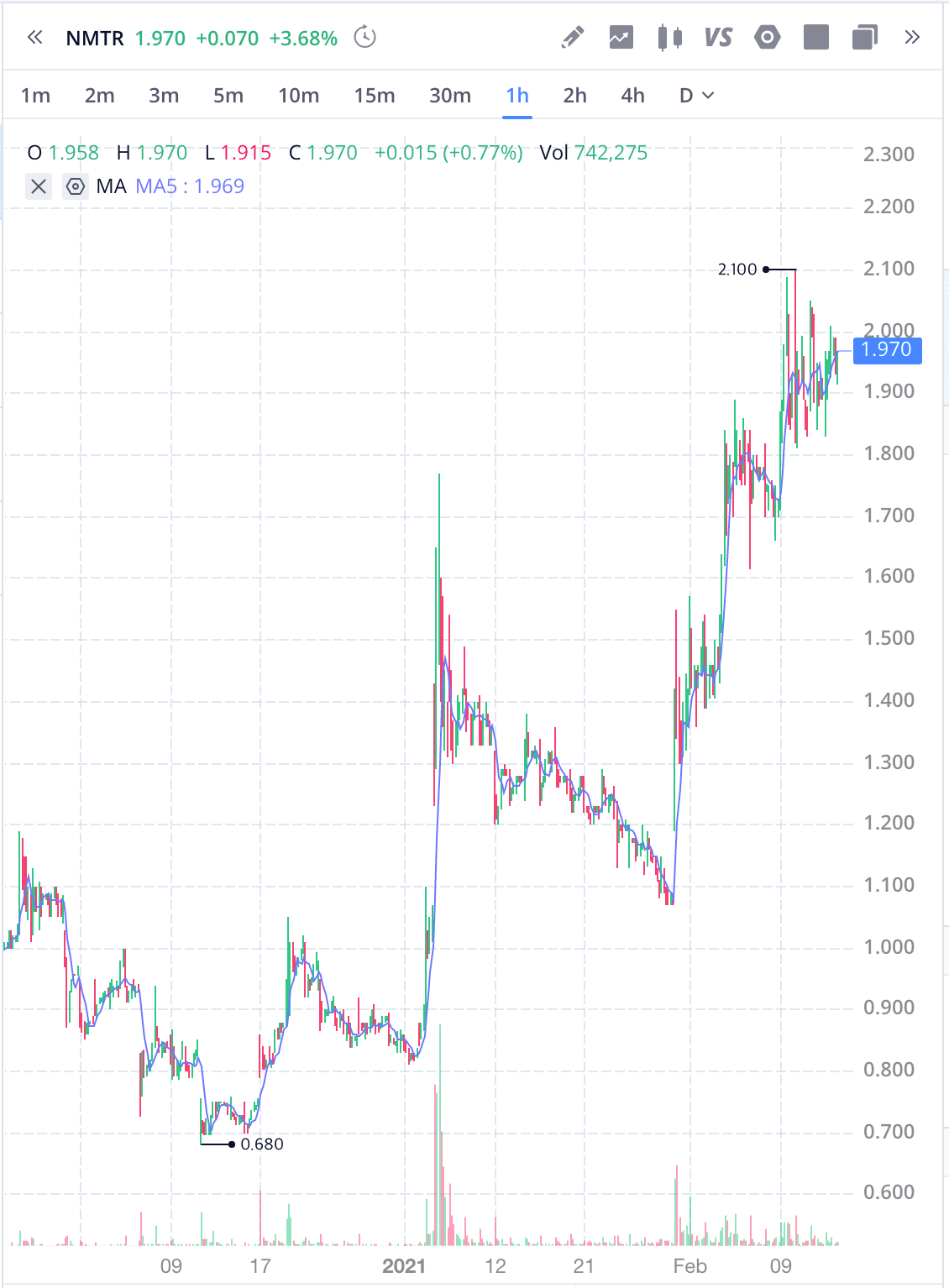Covid 관련 연구에 참여하기 때문에 NMTR 주식은 지난 몇 달 동안 인기가 높아졌지만, 이것은 Covid 치료에 관여하지 않는 생명 공학 회사보다 더 불안정합니다. 대부분의 경우 시험에서 결과가 발표되려면 상당한 시간이 걸리지만, 그 동안 회사는 파이프 라인에 몇 가지 다른 화합물을 보유하고 있습니다.