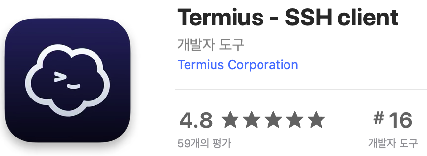 -app store에서 Termius 를 설치합니다. (무료버젼으로 사용가능)