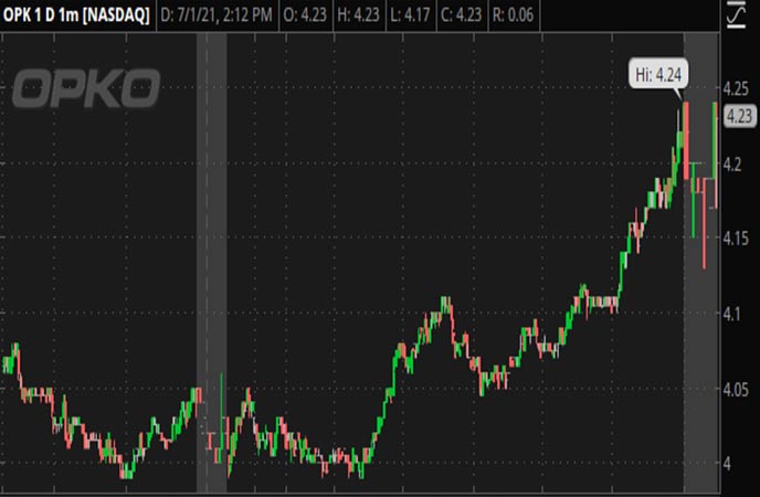 지난달 OPK 재고가 크게 증가했고, 회사의 주가는 한 달 전 평균 주당 $3.66이었고 지금은 평균 주당 $4.24입니다.