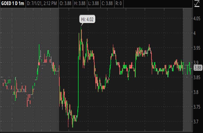 한 달 전 GOED 주식은 주당 평균 2.15 달러였습니다. 이제 GOED 주식은 하루 전 기준으로 평균 주당 3.90 달러에 도달했습니다. 이와 같은 이익은 전례가 없지만 투자자에게는 주목할 가치가 있습니다.