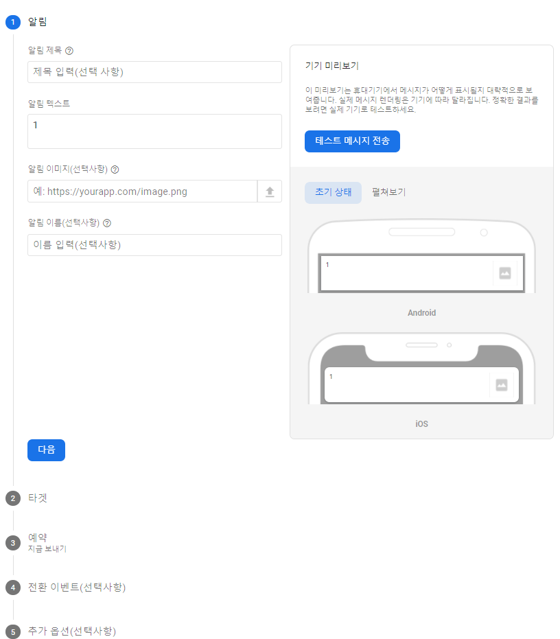 -Target : 테스트 메시지전송을 위해 테스트 기기를 등록해둘 수 있습니다.