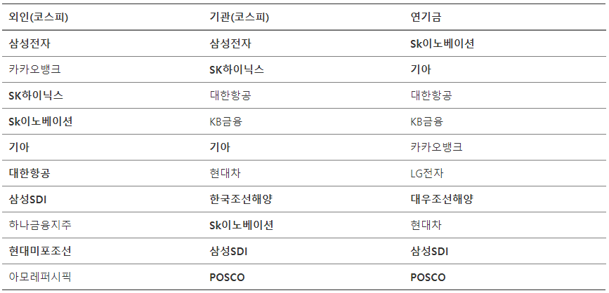 | SK하이닉스 | 대한항공 | 대한항공 |
