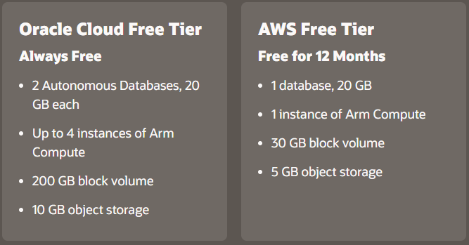 [기존 Free Tier] AWS Free Tier 와 Oracle Cloud Free Tier 비교